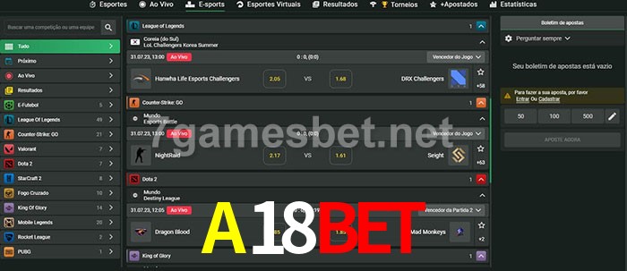 A aposta A18Bet oferece aos jogadores a experiência mais conveniente de apostas em eSports!